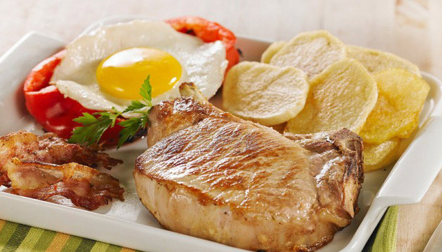 Your choice of eggs your choice of meat, bacon, ham, or sausage, hash browns and toast